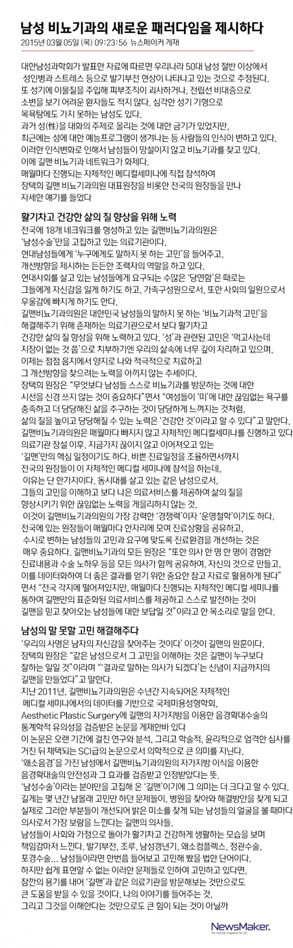 NO. 9 지점 작성일 2016.08.09 조회수 3,801 제목 남성 비뇨기과의 새로운 패러다임을 제시하다 관련링크 본문 2015년 3월 5일 뉴스메이커게제 이전글 다음글 목록보기